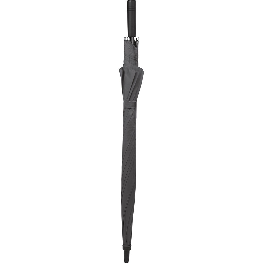 Ombrello diametro 118 cm in pongee 190T con manico dritto, asta in metallo, raggi in fibra di vetro, puntale in plastica, apertura automatica.